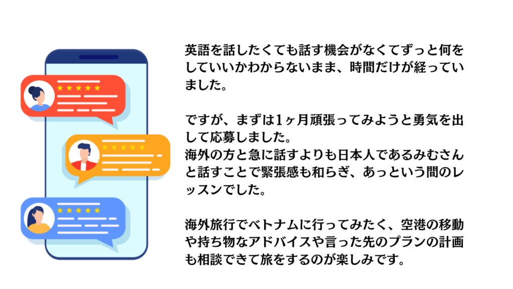 ✔「英語が話せない、英会話が怖い。」